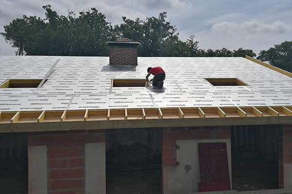 En neuf : isolation avec film pare pluie sur toutes les réalisations et contre lattage pour une ventilation maîtrisée et pose des tuiles